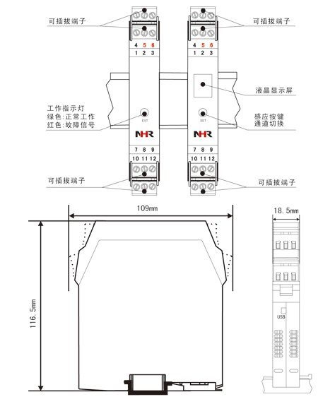 将直流电压或电流信号经过隔离传送,转换成所需的信号给其它仪表。可以与单元组合仪表及DCS、PLC等系统配套使用,给予现场仪表信号隔离、信号转换、信号分配、信号处理等,从而提高工业生产过程自动控制系统的抗干扰能力,保证系统的 稳定性和可靠性。可带液晶显示,通过红外轻触按键切换显示不同通道的参数,显示实时测量值、理论输出值、单位及通道号。