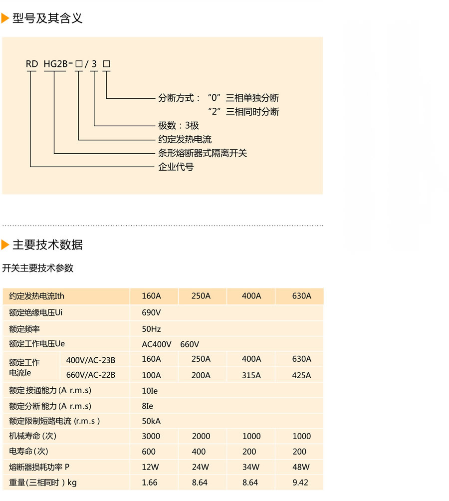 RDHG2B系列条形熔断器式隔离开关适应于交流50Hz额定电压至660V、约定发热电流至630A、可带负荷操作,首创电流互感器与条形开关―体化,具有上下进出线对调方便、可三相单独分断、亦可三相同时分断等优点,广泛用于成套产品及进口箱式变电站中。开关新颖美观,符合IEC 60947-3、GB 14048.3标准。  |