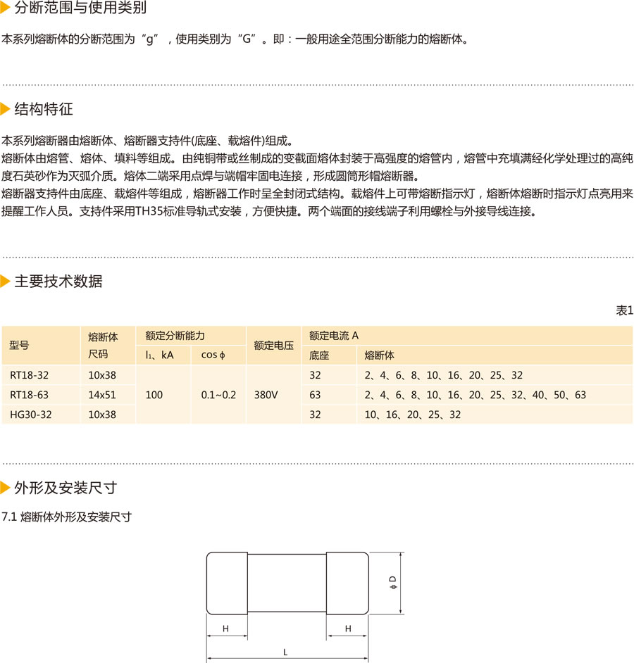 中国人民电器RT18/HG30系列有填料封闭管式圆筒形帽熔断器