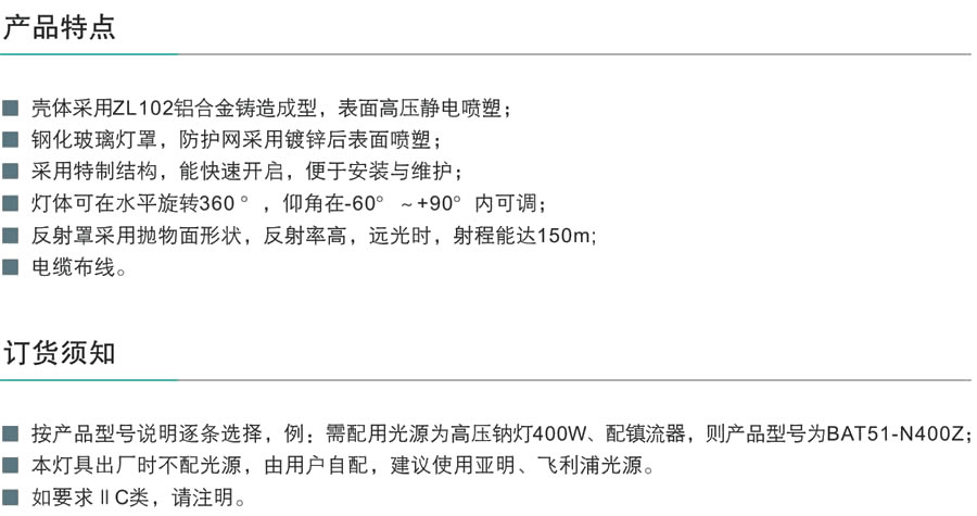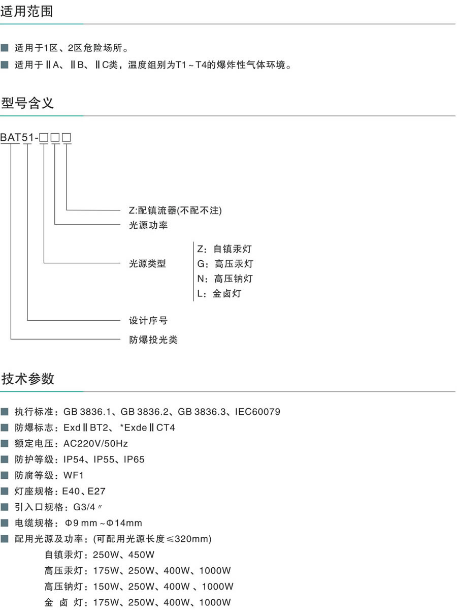 中国人民电器BAT51 系列防爆投光灯(ⅡB、ⅡC级)