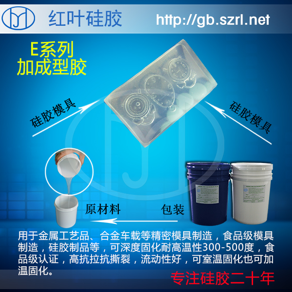 一种双组份加成型液体硅胶材料构成的透明模具高温硅橡胶,由A、B两组份可流动性的液体胶组成,可室温固化也可加温快速固化。 流动性好、易操作、不受制品厚度限制,有着优质的流动性、耐高温和热稳定性的高品质透明模具硅胶特性,能灌铸和刷涂,操作简单便捷。