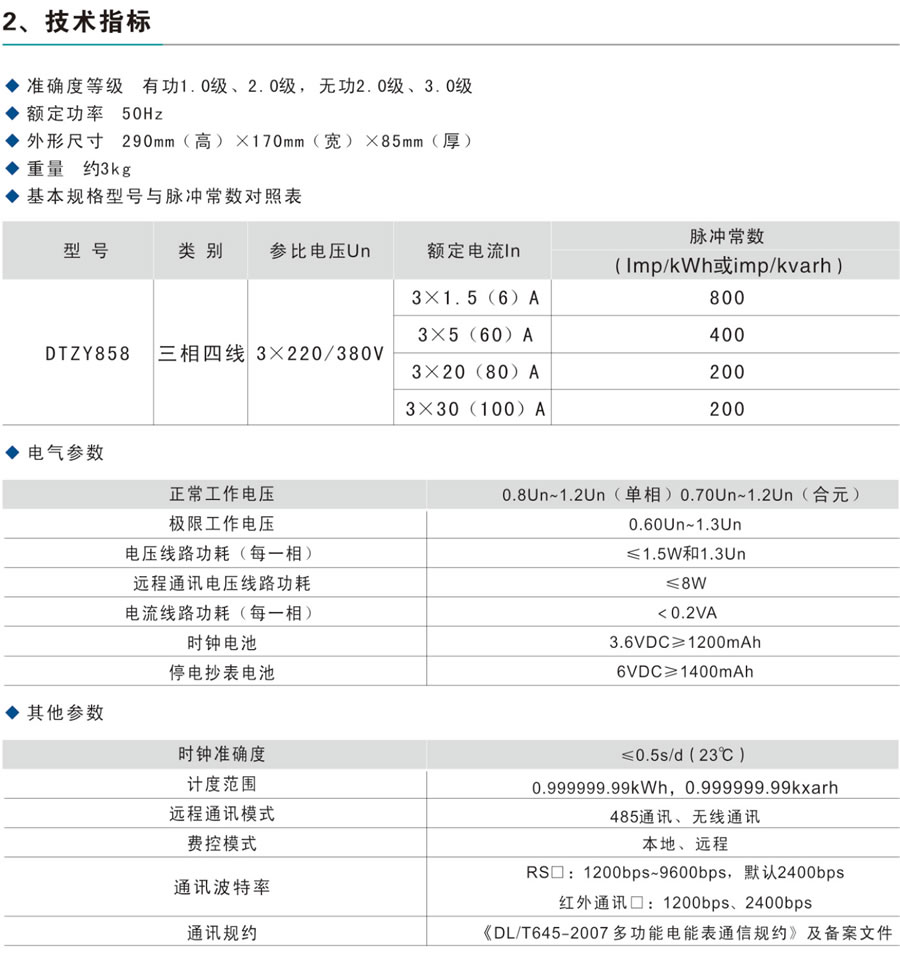 | DTZY858三相四线费控智能电能表是我公司研制开发的新一代智能型电能计量产品:由测量单元、数据处理单元、通信单元等组成,具有电能量计量、信息存储及处理、实时监测、自动控制、信息交互等功能的电能表;采用现代微电子技术、计算机技术、电测量技术、数据通信技术研制而成;能精确计量电网中的用电数据,正确追溯电网供用电过程所发生的 各类事件,病具备负荷控制功能,用户可提前要求选配内置继电器或外置继电器对用电负荷进行控制。具有脉冲输出、RS-485通信接口,无线远程通讯方式、可选配远程或本地费控方式,使用、维护简单方便,是电力部门在智能电网建设中的理想计量器具。 |