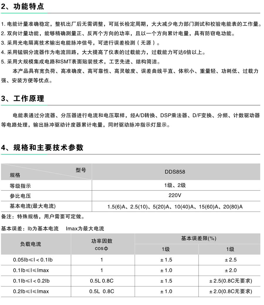 | DDS858型系列单相电子式电能表,广泛用于计量居民住宅、机关、商店等的照明、家电等用电量。该表采用先进的超低功耗集成电路技术和SMT制造工艺,用以计量额定电压220V、额定频率为50Hz/60Hz的交流单相有功电能。 其性能符合IEC 61036:2000(IEC 62053-21:2002)和GB/T 17215-2002《1级和2级静止式交流有功电能表》标准中对单相电子式电能表的全部技术要求。 |