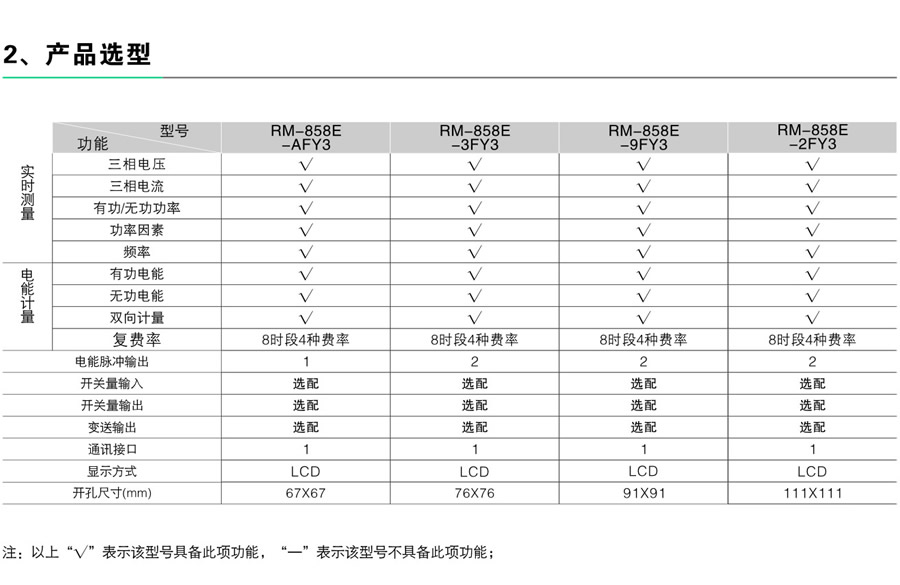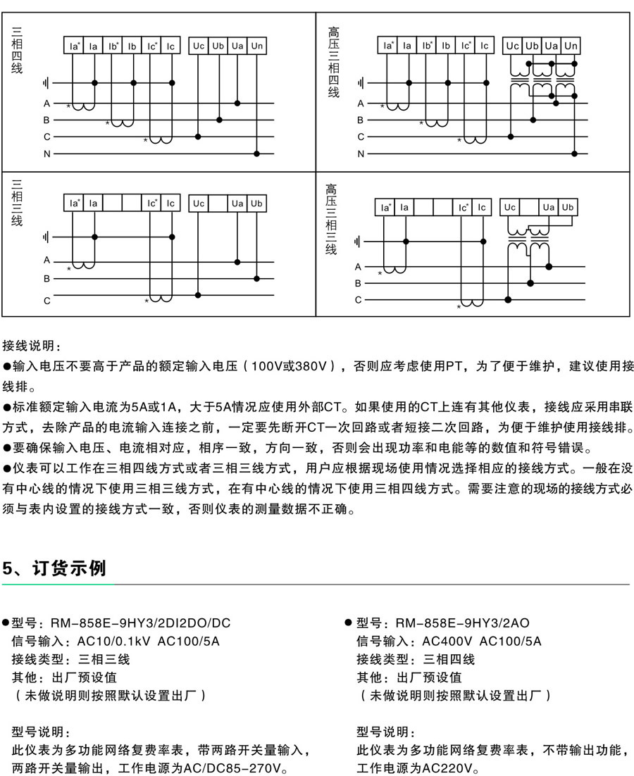 RM-858E系列安装式付费率电能表示一种具有测量、显示、通讯、电能脉冲输出和可编程设置功能的智能电表,最多具有2套12时段4中费率。标准的RS-485通讯接口,符合Modbus-RTU通讯规约。采用蓝色背光LCD显示,安装结构为屏装方式,可广泛应用于变电站、配电房、智能建筑和企业内部等的电能计量、管理和考核,该产品符合国家标准GB/T 17883-1999和GB/T 15284-2002。