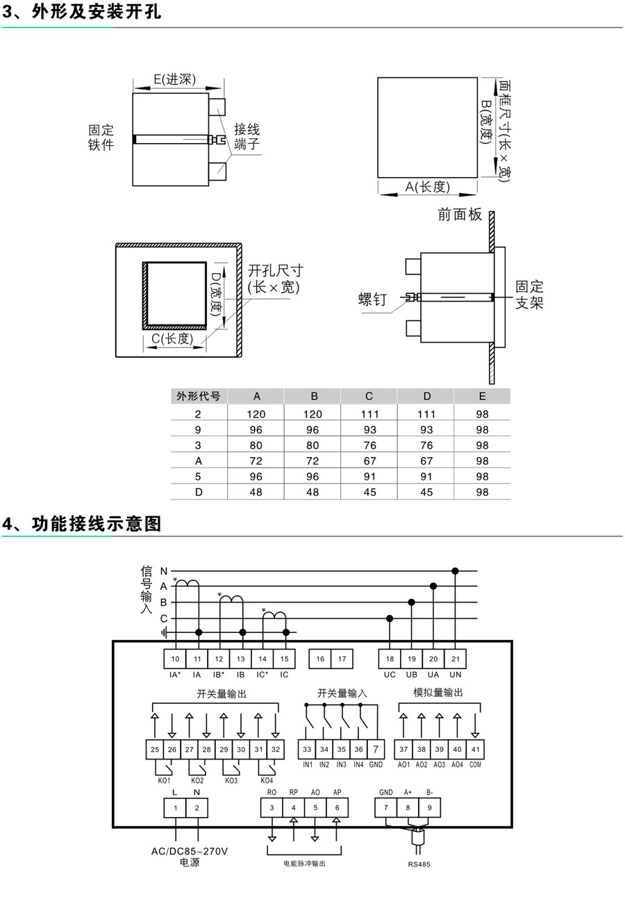 ●测量三相电网所有电量U、I、P、Q、PF、F等 |