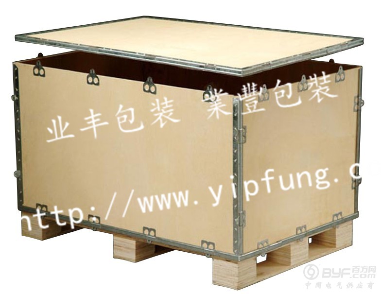 该木箱采用胶合板和钢带组合,不用铁钉;安装、组合、拆卸、使用简单方便,不用时可折叠起来,占用空间小。外形美观精致。容易破损的边角由于有钢带的加固,比普通木箱坚固耐用。
