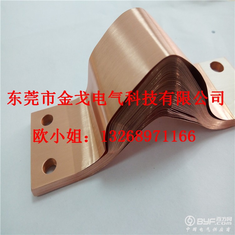 材质:铜箔软连接是由0.10mm(标准设计)或者按客户要求使用0.03、0.05、0.20、0.30、0.40、0.50mm的铜箔组成的。