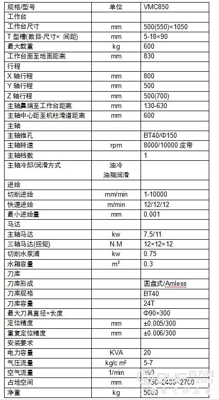 VMC850B三轴丝杆螺距:10×10×10mm