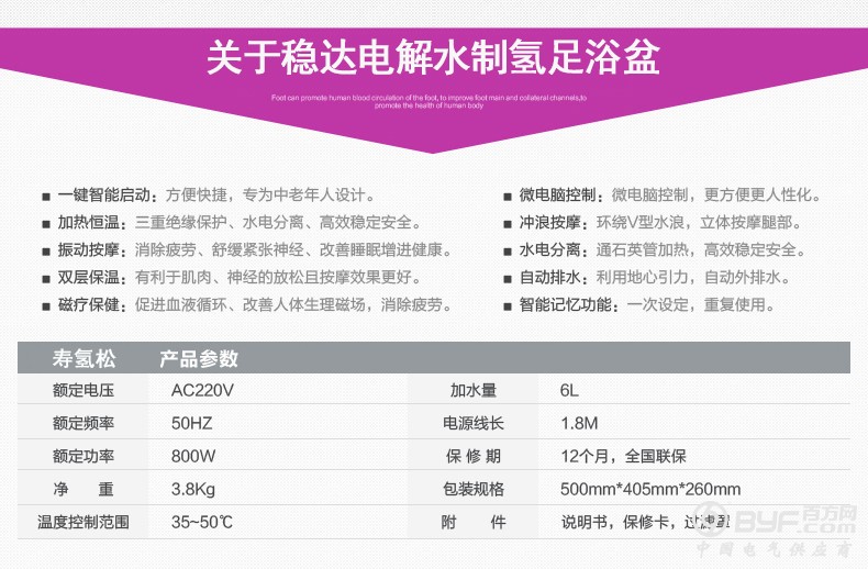 脚是人体中离心脏最远的部位,冬天由于寒冷的刺激,脚部血管收缩,血液运行发生障碍,易诱发多种疾病。泡脚就是足浴,属于中医足疗法内容之一,也是一种常用的外治法。泡泡脚,既解乏,又利于睡眠。热水泡脚可以改善局部血液循环,驱除寒冷,促进代谢,最终达到养生保健的目的。而氢水泡脚机春夏秋冬都可以使用,是当今世界最先进的水疗减压产品代表,全新的清毒水疗理念。暂别城市的喧嚣,协同爱侣或家人,一个角落,一盆清水,沐足水中,闭上双眼,让产品带给我们高品质的休闲保健体验。