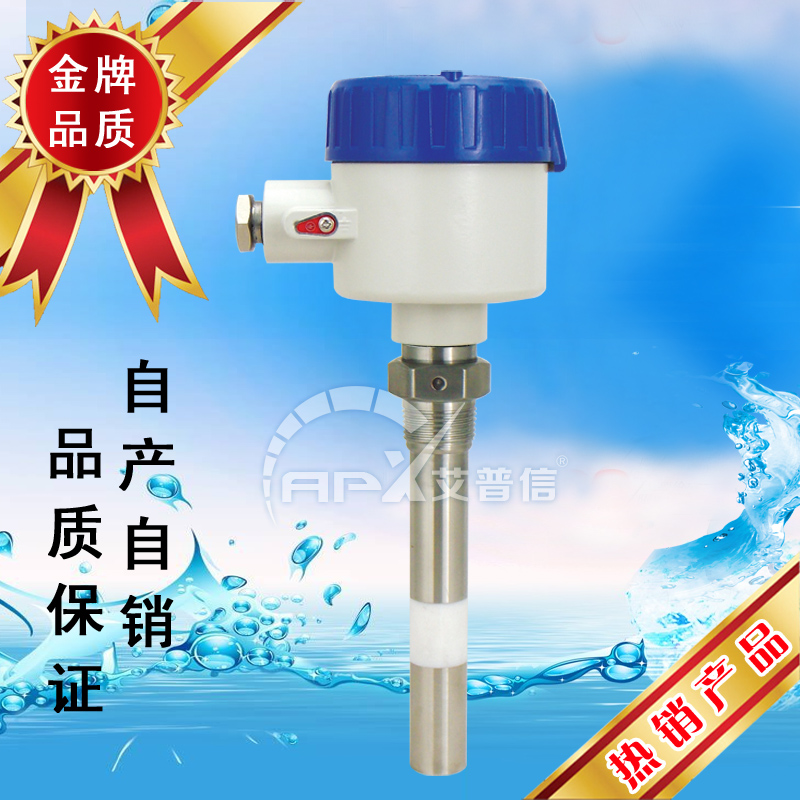 APX601电容式料位计采用先进的数字智能补偿技术,将容器内的液位变化量转换成电容变化量。探极内有两个极板,介质的变化改变电极间的介电常数,从而得到电容量的变化,通过电子插件把电容量转换成电压信号,通过微处理器来完成报警点的设计和报警动作的实现。