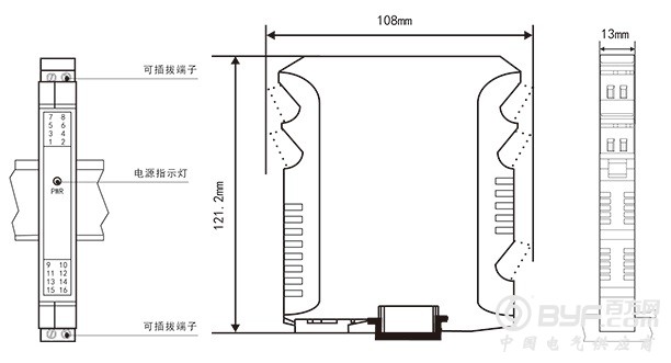 | ★单通道、双通道。 ★直流电压、电流输入。 ★模拟量输出。 ★输入/输出/电源磁隔离。 ★传输精度(20℃):0.15%FS。 ★响应时间短,厚度薄,功耗低。 ★插拔式端子,便于安装、维护。 ★标准的35mmDIN导轨卡式安装。 |