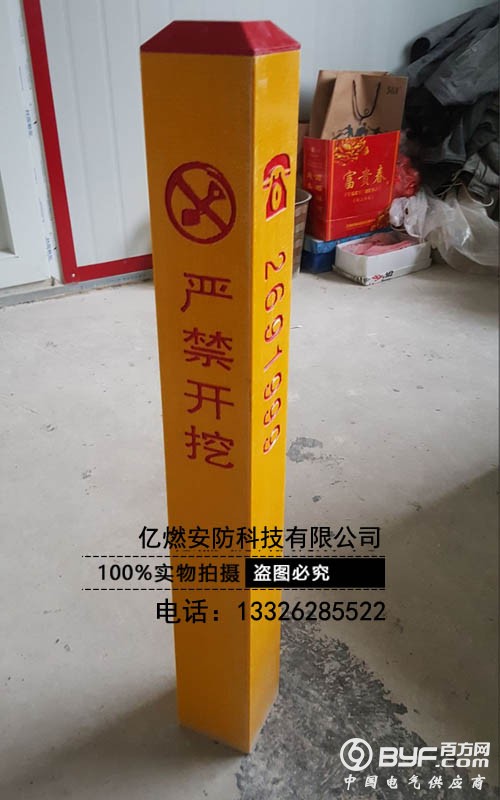 管线警示桩的埋设是燃气公司、供水公司、通信公司、电力公司等一项重要工程,所埋设的管线包括警示桩处管线和所有新建的管线及电缆铺设,并且这项工程对公司的正常运行管理有着极其重要的意义。之前的管线虽然埋设有水泥标志桩,由于间距大、标识不清晰,让人很难分辨出下面埋设的是何种管线,例如在今年开春的施工旺季,一些施工队伍经常挖破了天然气管线,对公司天然气的正常投用产生了不利影响。针对这一现象,公司加快了对旧天然气管线标志桩的改造力度和新建天然气管线上标志桩的埋设速度。在制作警示桩时特别注意选择公司的标志性,上面标有管道类型、公司名称、举报电话、管径和桩号,让人看到警示桩后就很清楚地下管线的埋设情况,同时通过举报电话让每个市民都可以参与到天然气管线的监管中来。