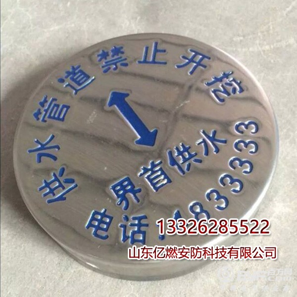 标志牌的基材为特种复合型不锈钢材质,使用寿命长,具有高强防盗性、抗压、耐磨、耐水、耐气候性,永不生锈,本品采用凹形字加工工艺,字体清晰度保持时间久,无污染,施工方便。分别用于各类城市道路(如:水泥、沥青、大理石、地砖及各种硬化路面)一年四季均可施工。