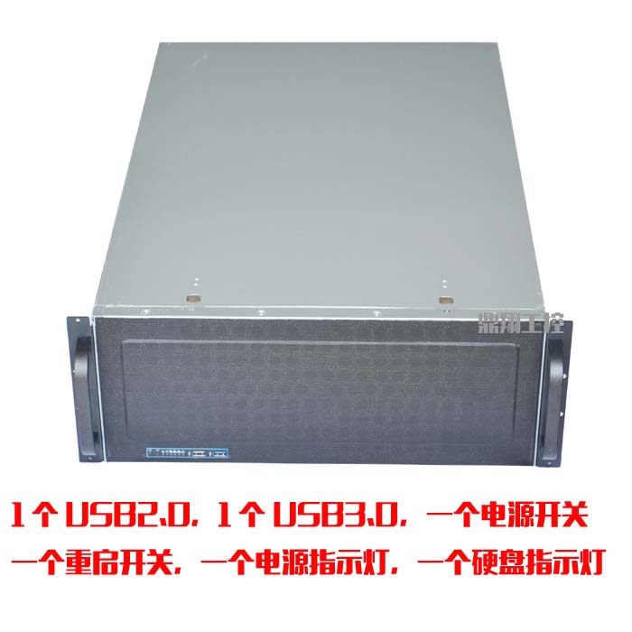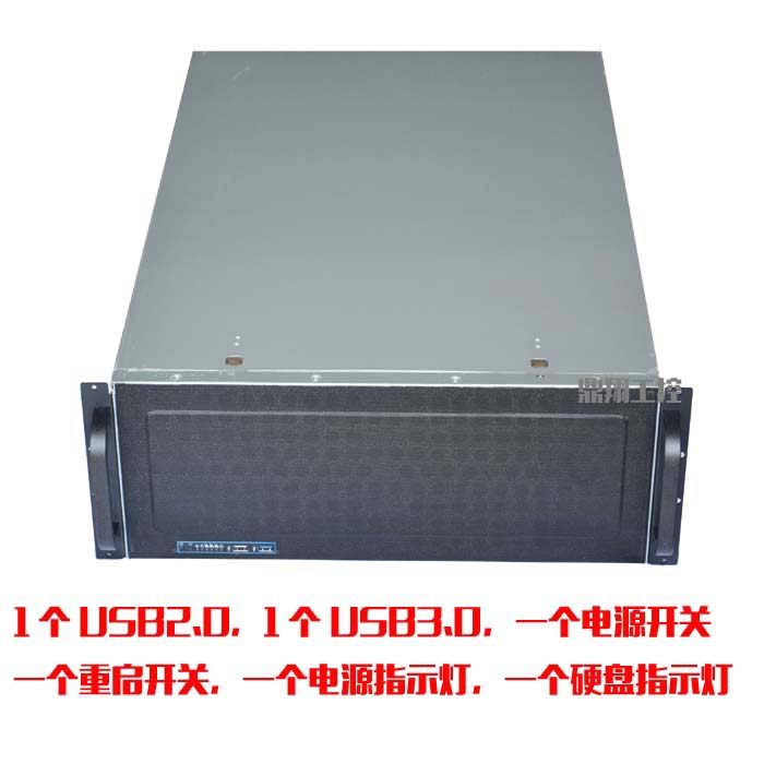 面板设置:1个USB2.0,1个USB3.0,一个电源开关,一个重启开关,一个电源指示灯,一个硬盘指示灯