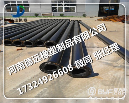 一、河南德远橡塑生产的耐磨管的耐磨性具塑料之冠,比尼龙66(66)、聚四氟乙烯高4倍,是碳钢、不锈钢的7-10倍;