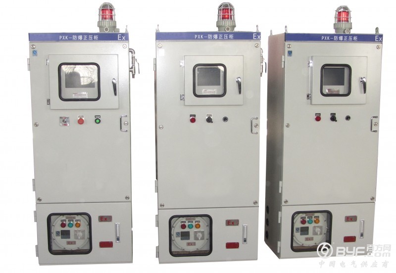 正压柜在自动控制系统的控制下,通入保护气体,正压腔内压力高于正压腔外的压力,形成微正压的安全小环境,从而阻止了可燃性危险气体进入正压腔内,保证内装普通仪表和电器元件的安全运行。