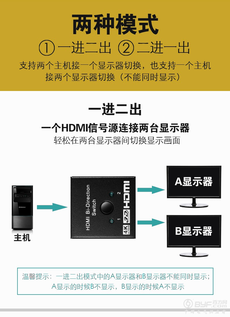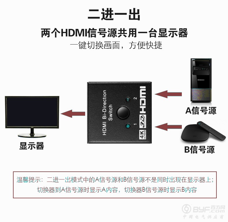 支持单一信号显示,多路输出高清信号源 比如可以输入接DVD播放器,A/V接收机,机顶盒