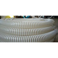 钢丝软管,是内带钢丝外覆PU透明材质的一种PU钢丝伸缩管。主要应用于有磨损力的固体如灰尘、粉末、纤维、屑片和颗粒,气体和液体环境,供除尘和吸取式厂房,工业真空吸尘器,纸类和纺织纤维。内壁平滑以保证物料在管内流动顺畅。耐霉菌、耐水解。螺旋钢丝接地可以排静电,符合TRB S 2153的规定。无塑化剂软管,阻燃度符合DIN4102B1标准。