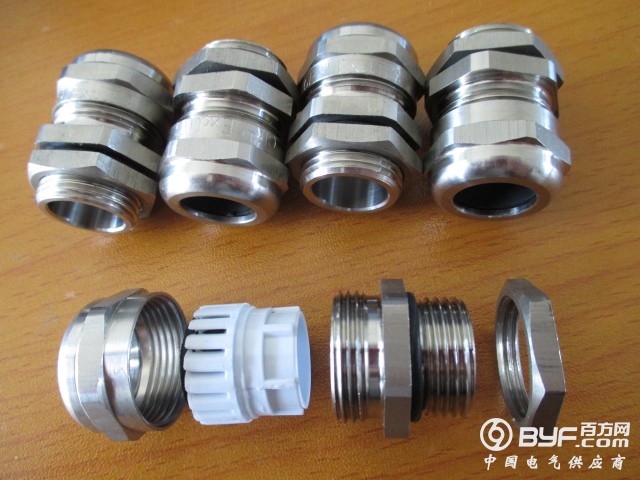 產品說明 :本公司的不锈钢电缆接头采用304不锈钢材质精制而成,具有独特的防爆功能,特殊夹紧爪与夹紧圈之设计,夹紧电缆范围大,抗拉力特强,可防水、防尘、抗盐、耐弱酸、酒精、油、油脂及一般溶剂。防爆作用广泛被使用在防爆电器,中石化,化工等行业,不锈钢电缆接头防爆认证齐全。
