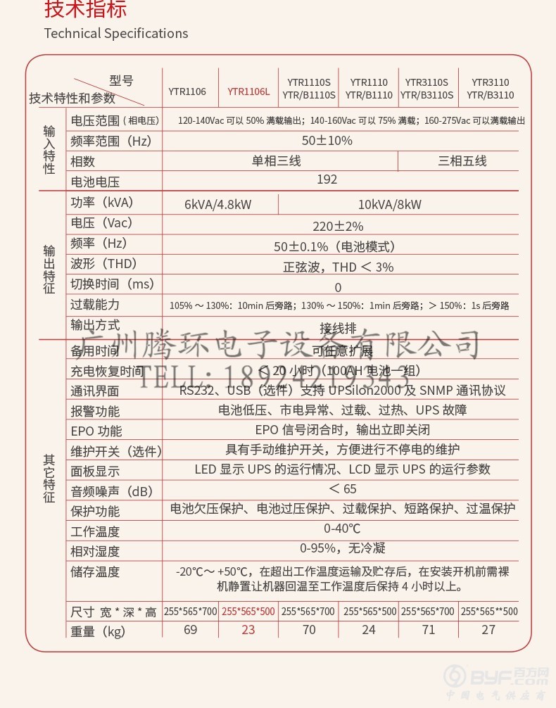科华UPS电源 YTR1106 标机 6KVA 按需配蓄电池