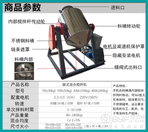 适用范围:主要用于、化工、农药、燃料、、食用盐、中药粉、 糖类、面粉、各行业的粉体添加剂和微量元素的混合,干净卫生不氧化。密封性好,变速箱,齿轮带动 倒料方便,可以360度旋转。