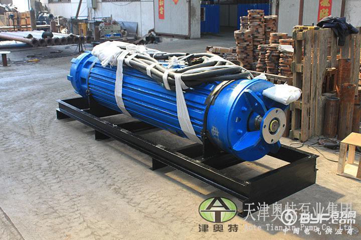 津奥特生产的产品 充水式高压矿业潜水电泵,用途广泛,占地的面积小,安装时候省空间,省去很多的成本,不同扬程有不同型号的电泵,出水口配对法兰一片,使用维护说明书1份,安装起来占地面积也不大,到厂房来制定