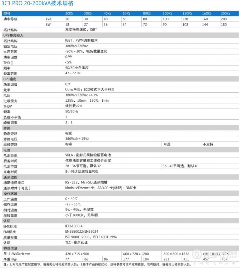 山特UPS不间断电源 城堡3C3 PRO 20-200kVA在线式UPS