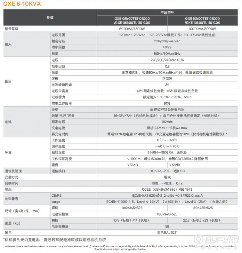 再充电时间 :带载100%放电至UPS自动关机,6小时充至电池容量的90%(标机)