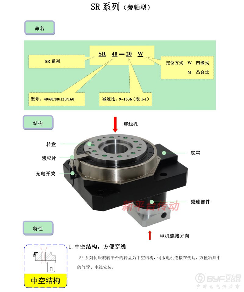 深圳市新平台传动设备有限公司是目前国内专业研发、生产、销售精密伺服旋转工作台的企业。所生产的伺服旋转平台以超重载、高旋转精度,低侧隙为特点,其产品类别包括同轴型,旁轴型,直角型三种结构形式,主要适用于机械手臂、数控转台、对位机构、军工雷达、自动化及测量和试验中要求精度高的领域。