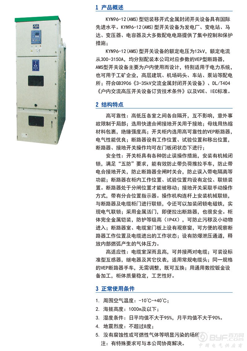 KYN96-12(AMS)铠装移开式金属封闭开关设备