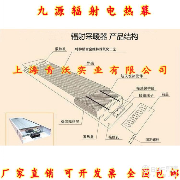 我公司生产的九源牌高温电热幕,用料精良,做工考究。安全性能、热转换率。九源电热幕应用于大型通透的高大厂房车间辐射采暖供暖和工业生产加工中心供暖,仓库和购物中心、展览会场、多功能场馆以及室外采暖等许多其它场所。