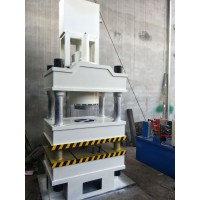 液压龙门压力机机顶、工作台由两根槽钢连接在一起,油缸装在机顶底端内孔上,卡头装在油缸柱塞下端,于柱塞一起做往复运动,机顶上螺母用于调整压力机精确度。液压系统(泵站)装在主机一侧,整个系统由电机带动高压油泵输入液压油,通过溢流阀、电磁阀、液控单向阀、压力表、管路等输入油缸,使油缸柱塞实现上下往复运动,液压缸的行程高度,可根据客户要求定做。