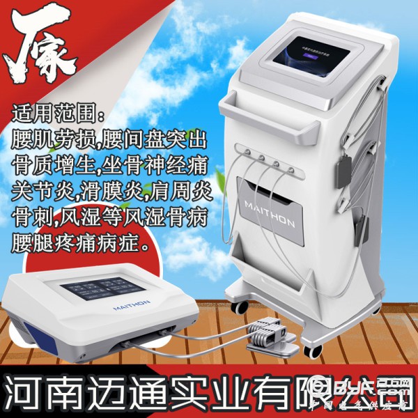 河南迈通实业有限公司生产的产品,该产品将中华传统医学的经络学与现代医疗学理论有机结合,并合理利用;把理疗学的温热效应、电磁效应、微波效应与人体穴位刺激经络相结合。该治疗仪机理是作用于经络穴位,进而对病变部位的生物磁场进行调节,使其产生一系列生理、生化反映以达到奇特的祛风除湿、温经通络、活血化瘀、散寒止痛的治疗作用,有效地起到了消炎止痛、解痉消肿、改善组织营养、促进血液循环、加速新陈代谢,恢复人体机能的治疗功效。治疗过程简单、方便、有效。