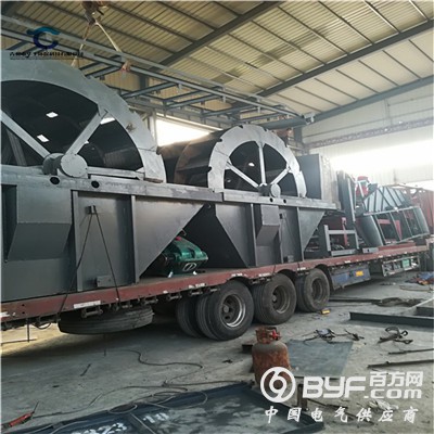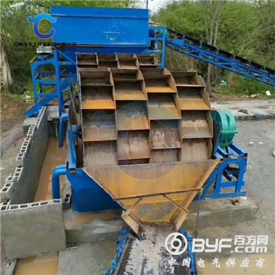 该洗沙机生产线工作原理是:洗砂机工作时,电机通过三角带、减速机、齿轮减速后带动叶轮缓慢转动,砂石由料仓上料,进入振动给料机中,再由给料机均匀喂料由输送带进入滚筒筛(振动筛),进行筛沙筛石工作,再由输送带送入洗砂机洗槽中,在叶轮的带动下翻滚,并互相研磨,除去覆盖砂石表面的杂质,同时破坏包覆砂粒的水汽层,以利于脱水;同时加水,形成强大水流,及时将杂质及比重小的异物带走,并从溢出口洗槽排出,完成清洗作用。干净的砂石由叶片带走,砂石从旋转的叶轮倒入出料槽,完成砂石的清洗作用。性能参数洗沙机应用范围广泛用于砂石场、矿山、建材、交通、化工、水利水电、混凝土搅拌站等行业中对物料的洗选。