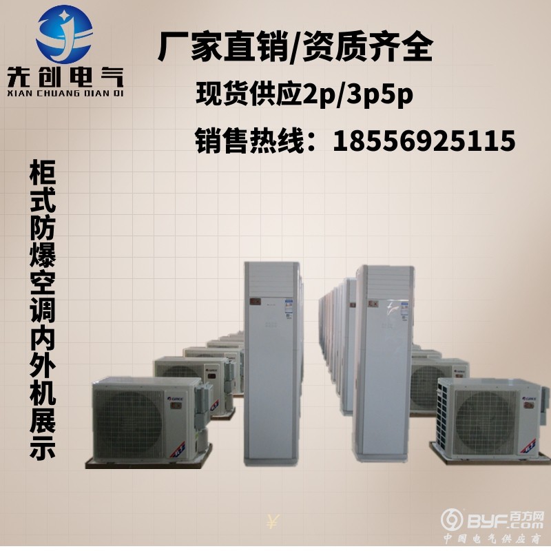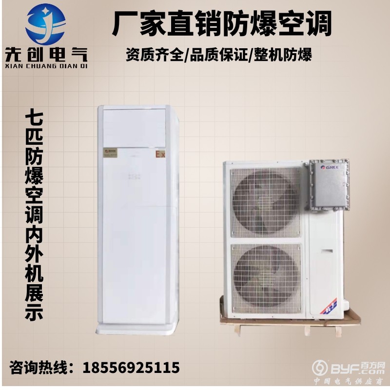 防爆空调是防爆电器的一种,主要用于石油、化工、危险品仓库,漆房,军队、油库、海洋石油平台,等易燃易爆的混合性气体环境制冷和制热,先创防爆空调的外观和用法与普通空调一样。产品具有制冷制热和自动除霜功能,压缩机、风机等都经过特殊的防爆处理,防爆类型为整机防爆。在结构上采用隔爆型、本安型、浇封型等复合防爆技术,控制端全由本安型控制,不产生任何电火花,使用方便安全,采用高效多翅式换热器,冷煤通过时与空气的接触更充分,能大幅度的提高空调的制冷制热效果,手动控制和遥控两种。