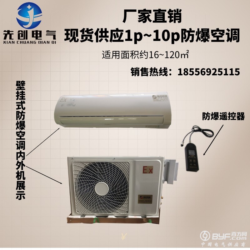 防爆空调是防爆电器的一种,主要用于石油、化工、危险品仓库,漆房,军队、油库、海洋石油平台,等易燃易爆的混合性气体环境制冷和制热,先创防爆空调的外观和用法与普通空调一样。产品具有制冷制热和自动除霜功能,压缩机、风机等都经过特殊的防爆处理,防爆类型为整机防爆。在结构上采用隔爆型、本安型、浇封型等复合防爆技术,控制端全由本安型控制,不产生任何电火花,使用方便安全,采用高效多翅式换热器,冷煤通过时与空气的接触更充分,能大幅度的提高空调的制冷制热效果,手动控制和遥控两种。