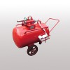 本装置采用推车形式,在火灾发生初期时,机动、灵活地推动该装置到灭火现场进行灭火。本装置可独立作为消防防卫器材,也可配合大型固定式泡沫灭火系统起辅助补救作用。该移动式泡沫灭火装置可由消防管网或城市供水管网、消防车、手抬消防泵提供压力水源,经负压比例混合器按一定的比例(3%或6%)与泡沫贮罐内的泡沫液形成泡沫混合液,再通过空气泡沫产生器形成泡沫喷出灭火。