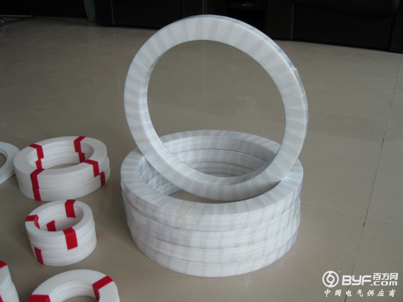 聚四氟乙烯垫片国外又叫PTFE垫片或Teflon(铁氟龙)垫片由聚四氟乙烯悬浮树脂模压、烧结而成。或经机械车削或裁切而成的平垫片、V形垫片、活塞环、球阀垫圈等具有耐腐蚀(熔融的碱金属和高温、高压下的氟除外)、抗老化和不导电等良好特性。纯聚四氟乙烯垫片是一种洁净的密封产品,不会对其所接触的任何物质形成污染,可以广泛地用于、医药等行业中。 性能特点: 四氟垫 简单介绍:PTFE垫片以纯的四氟粉料或混合料,四氟的板、棒、管等为材料,用模压、车削或切割加工而成。在已知的塑料中四氟具有的耐化学性能,不老化,低磨擦系数、耐磨损,工作温度也宽,-180~+260°C。 改性四氟垫片在传统的纯四氟垫片中再均匀加入玻璃纤维、碳纤维、石墨粉等填充材料。与纯四氟相比,它具有更好的抗压强度,耐磨损,好的热传导,无冷流,低热膨胀等。 不同的改性四氟垫片能满足各种不同的需要。 产品应用: PTFE不同的改性材料能提供你好的机械加工性能,导电性能,热传导性能及耐腐蚀、耐磨损,低磨擦系数,广泛应用在阀门密封,轴承,及有耐酸碱要求的导轨,压缩机、空调配件等,不同的改性材料,结合四氟本身的特点,更加加宽了其应用领域。 推荐密封垫片:包覆式垫片-钢包垫片-金属石墨复合垫片-高强石墨垫-金属包覆垫片-金属石墨包覆垫片-金属缠绕垫--石墨缠绕垫片-金属齿形垫-八角垫-石墨增强复合垫片-高强垫-随圆垫-波齿垫片制造-紫铜垫-聚四氟乙烯垫片-四氟垫-四氟包覆垫 推荐密封盘根:芳纶纤维盘根-芳纶盘根-高水基盘根-聚四氟乙烯盘根-四氟盘根-柔性石墨环-石墨填料环-碳素盘根生产-碳素纤维盘根-石墨盘根-柔性膨胀石墨盘根-陶瓷纤维盘根--陶瓷盘根-玻纤盘根-玻璃纤维盘根
