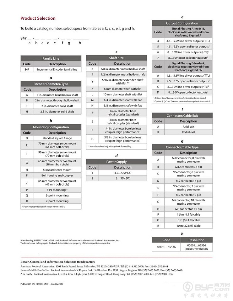 847H-DN2A-RG01024;增量式编码器,标准方法兰,3/8英寸直径的平轴,4.5-5.5伏直线驱动器,TTL (b - ls - a, CW, Z带BN门控),MS连接器,10针配合连接器,每转1024脉冲。