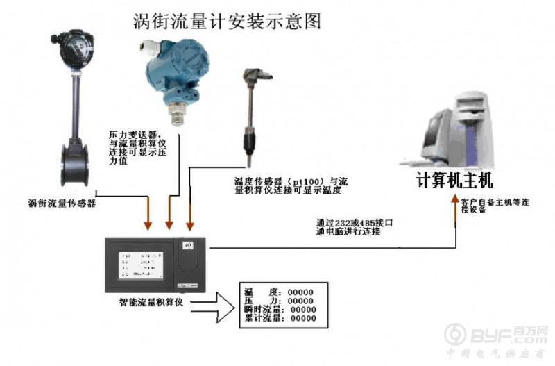 - 抗振动涡街流量计专用法兰与直管段焊接时不能带着传感器焊接。安装时应使传感器的流向标志与管道内流体流向一致。