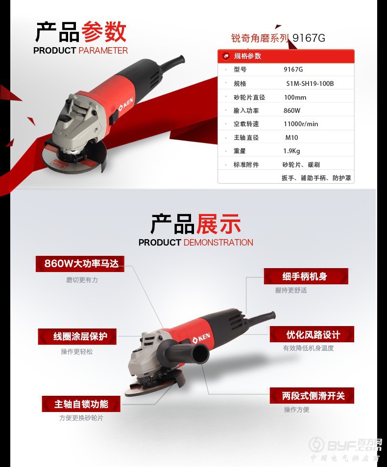 KEN锐奇9167G大功率角磨机石材瓷砖切割电动角向磨机