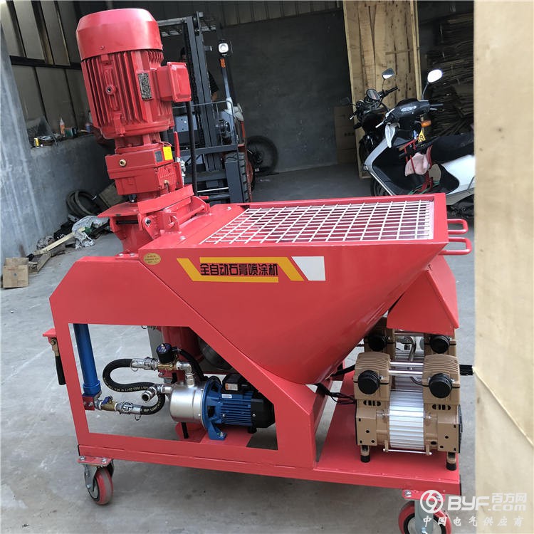 石膏喷涂机机是一款多功能喷涂机,设有水泵与水计量功能。具有自动搅拌、泵送、粘结、喷涂联合作业功能。石膏抹墙机,适宜 不同特性与不同用途的预拌干混砂浆施工;不受地区和环境条件及喷涂面形状的限制,设置自动送料机构;具备自动连续搅拌功能;压力控制保护机构,实现远程控制操作,一键启动自动上水干粉搅拌省时省力,移动方便操作简单。