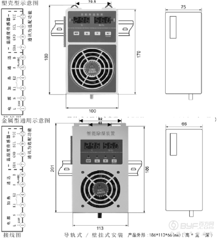 降温型:当F-01设置0时为降温型,当环境湿度高于湿度大值(湿度设定值加上湿度回差值)期间除湿装置会自动开启除湿;当环境湿度低于湿度低值(湿度设定值减去湿度回差值)停止除湿。
