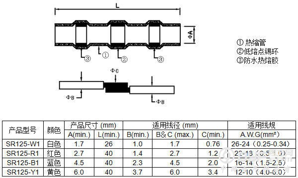 运行温度: -55℃~125℃ 完全收缩温度: 130℃
