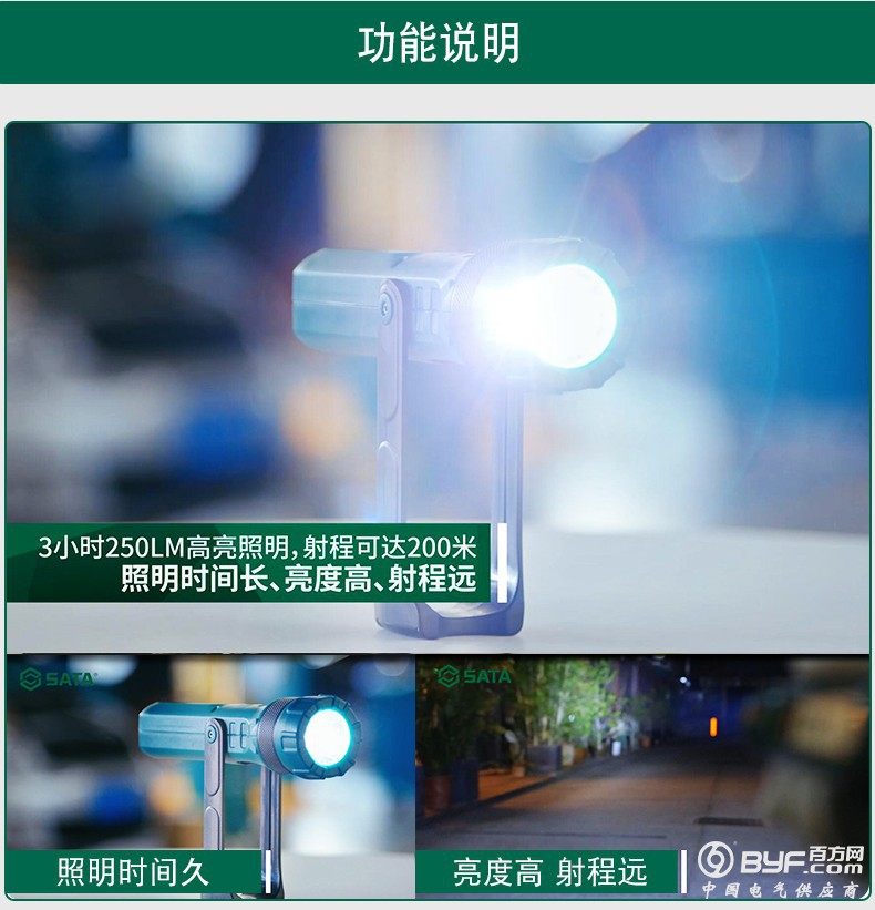 陕西西安榆林延安世达工具手电筒强光维修照明灯户外90790