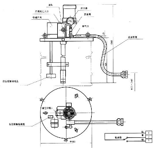 6、本泵设有低位报警装置,报警后应及时地向油筒内充填润滑脂。