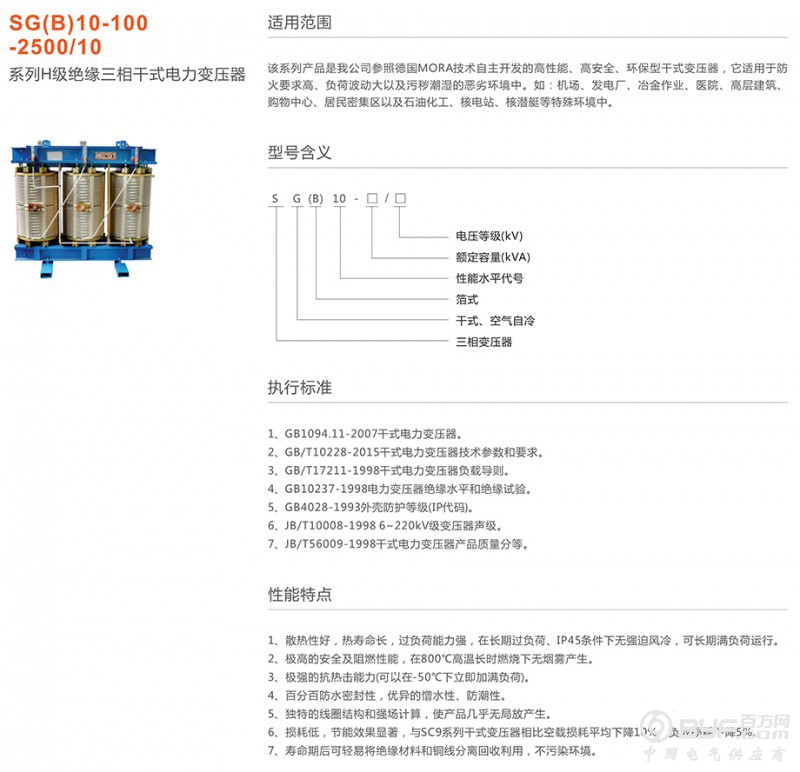 SG(B)10-100-2500/10系列三相干式电力变压器