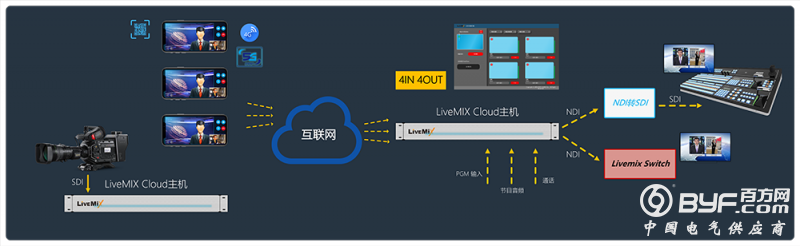 新维讯LiveMIX Cloud无限互联系统完全满足广大客户通过互联网互动制作的需求,可以大大节省制作成本,提高系统延展性,可以远程连接手机/摄像机并在演播室的环境下进行远程导播操作,从而节省了差旅成本并提高了流程效率。