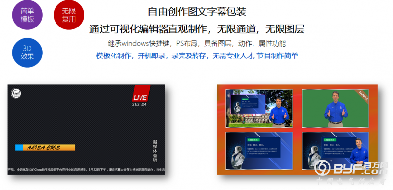 超高清基于GPU抠像合成,一键抠像,环境要求低,效果细腻,无限虚拟集制作,实现推拉平移无轨机位效果;