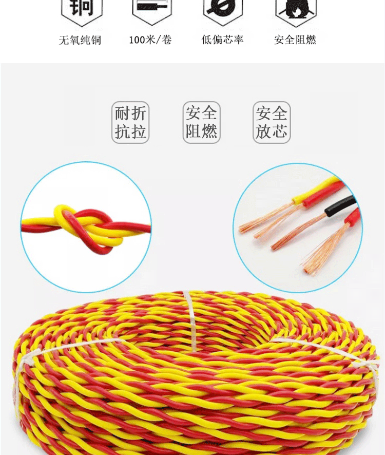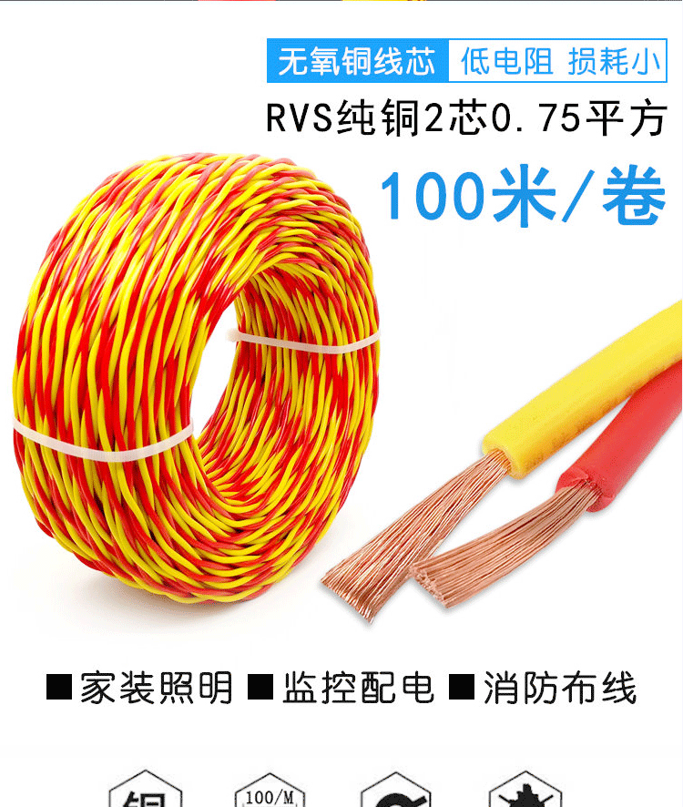 阻燃聚氯乙烯绝缘绞型软电线 ZR-RVS 家装电线 国标铜芯